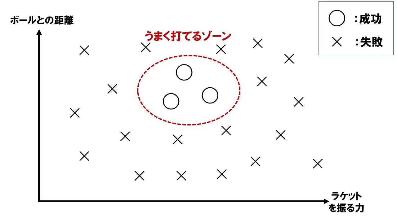 そしてこの「うまく打てるゾーン」を学習するプロセスは、人工知能の「教師あり学習」と同じです。